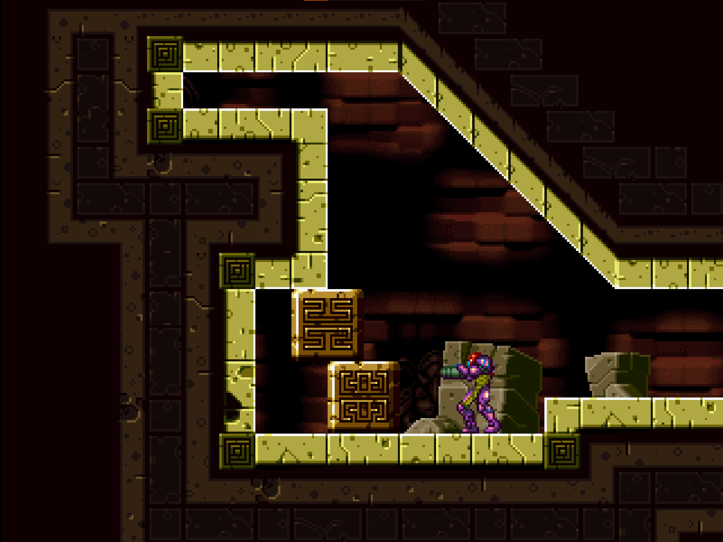 oBlockShoot; Beam blocksoBlockStep; Crumble blocksoBlockBomb; Bomb blocksoBlockMissile; Missile blocksoBlockSMissile; Super Missile BlocksoBlockSpeed; Speedboost BlocksoBlockPBomb; Power bomb blocksoBlockScrew; Screw attack blocksSome breakables (namely Shoot, Bomb and PBomb) also have Chain Variants.